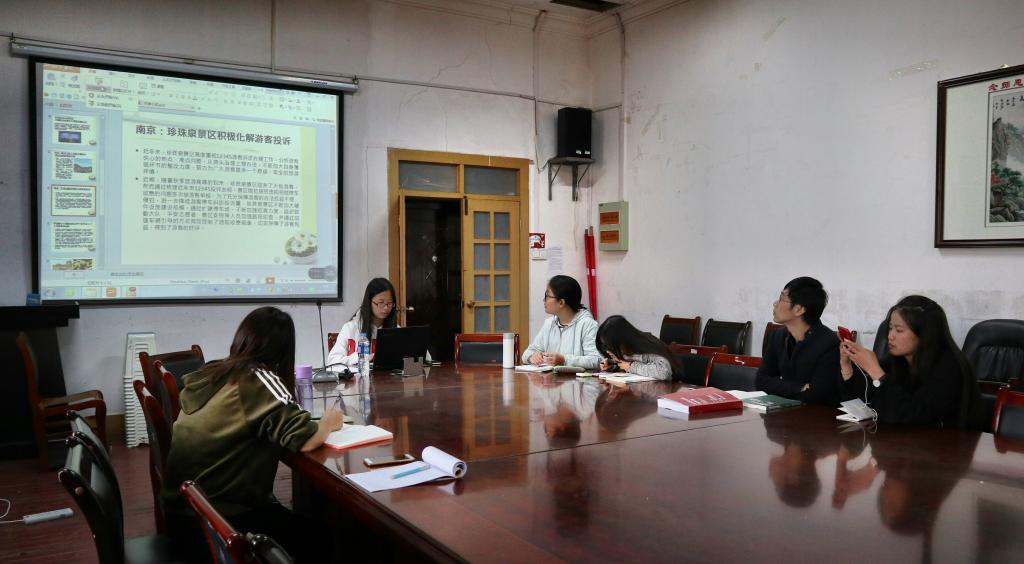 活动第一部分是新闻播报环节。由张寅颖带来旅游管理行业近期的热点新闻,如世界经济论坛中中国旅游竞争力升至全球第15位、天津国庆出游人次获大幅增长、西北游成旅游新热点和珍珠泉景区积极化解游客投诉事件等新闻。