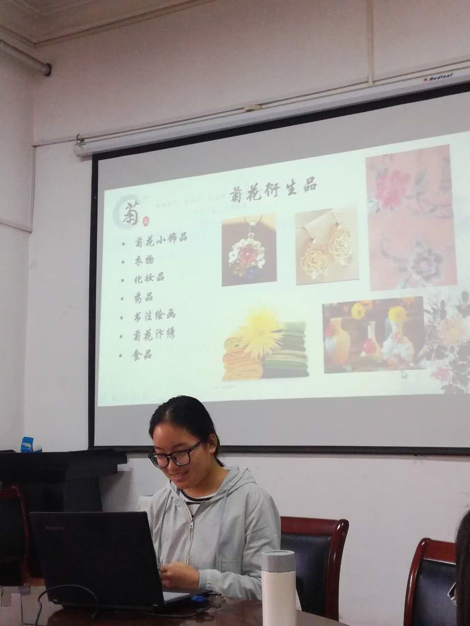 第二部分为主题汇报环节。16级旅游管理专业赵明明和赵园园两位同学经过实地调查,从菊花文化节的发展现状与存在问题、居民对菊花文化节的感知两方面进行了主题汇报。赵明明指出开封菊花文化节存在的问题主要表现在:近年活动主题相同,缺乏吸引亮点;衍生品类型不够丰富;“以节惠民”不够到位等。基于居民对节会的感知,提出加大对外宣传力度、缓解交通拥堵、规范旅游市场等建议。