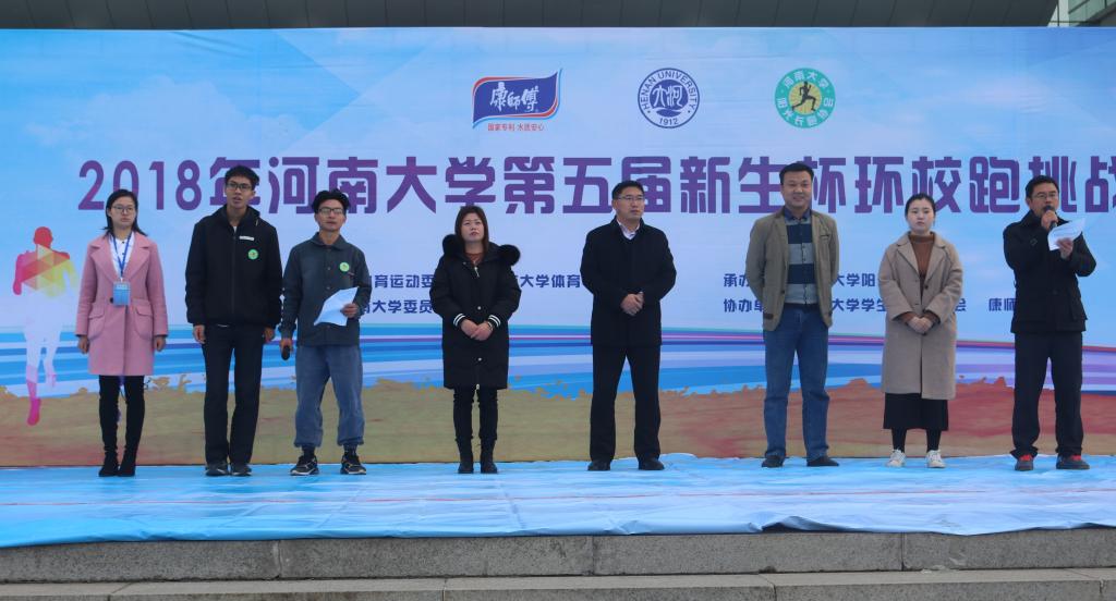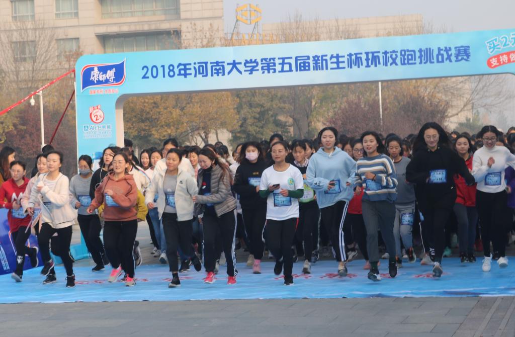社团联合会及康师傅饮品开封办事处共同协办的第五届“新生杯”环校跑挑战赛在金明校区图书馆广场前开跑。