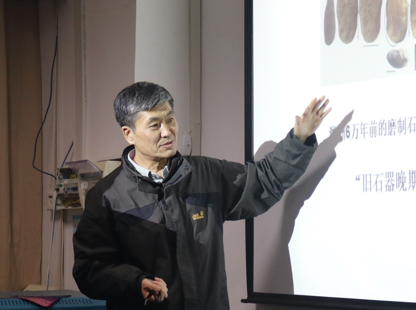 讲座开始后,王教授通过列举中国几个地区发现的现代人遗址,阐述了嵩山地区的新发现对现代人起源研究的重要性,也说明了关于世界现代人“晚近非洲人起源说”的片面性。他认为现代人的出现是一个复杂且漫长的过程,而且并不局限于单个地区。随后根据几个旧石器遗址年代的重新测定结果,介绍了对旧石器中期文化的新认识,并引出了中国旧石器中期考古遗址的发现。王教授从遗址地点、地层堆积、石制品等方面介绍了嵩山东麓史前考古遗址的大致情况,并详细介绍了登封西施和新密李家沟遗址的发现。西施遗址、石叶遗存的发现,填补了中国旧石器从简单石片到细石器技术发展道路上的缺环,为距今25000年左右现代人行为在中原及东亚大陆腹地的出现提供了直接的证据,而李家沟遗址各种遗迹遗物的发现,则为东亚现代人的起源提供了重要证据。最后,王教授对讲座内容进行了总结:晚更新世嵩山地区现代人的出现和发展,以及石叶技术的应用,为本区史前人类与文化的发展产生了巨大的推力。