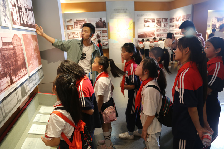 参观游学。校党委书记卢克平在大礼堂前接见了游学师生并与大家进行了亲切交谈。他激励大家说,“童年是人生经历中最宝贵的时期,在这个时期要树立正确的人生目标,要立志向、有梦想、爱学习、爱劳动、爱祖国,力争德智体美劳全面发展,长大后做祖国的栋梁之才。”经过一番亲切交流,孩子们自发为卢克平佩戴上鲜艳的红领巾,并在庄重典雅的大礼堂前合影留念。