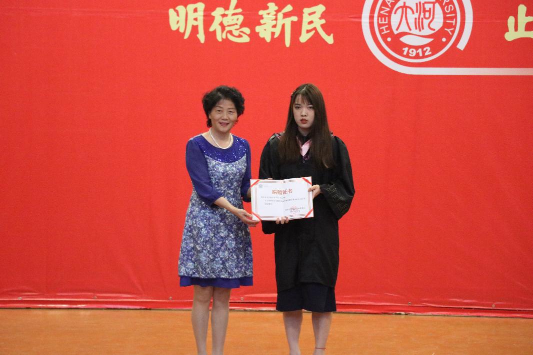 会议伊始,刘波向毕业生代表秦亚崎同学颁发捐赠纪念证书。然后,刘波代表学校致辞,她首先祝贺毕业生顺利完成学业,随后介绍了“心系母校·1元捐”活动的建立初衷。她表示,51暗网