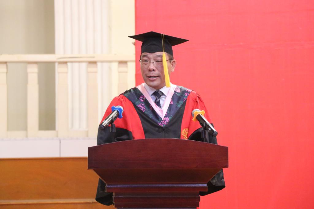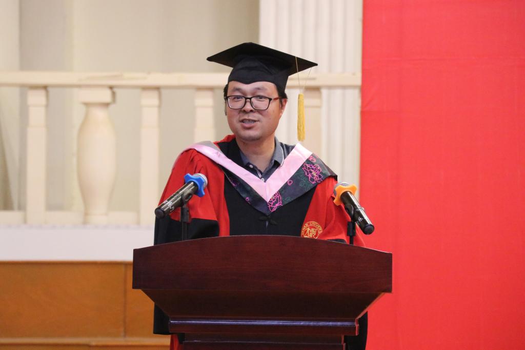 教师代表侯卫东寄语全体毕业生,希望他们能做一个正直和善良的人,有担当,有爱心;坚持训练、学习和成长,不断提升自己的高度、宽度以及深度;要有选择和坚守,发扬工匠精神,做好适合自己的选择并坚持下去。他表示,同学们即将迎来新的开始,祝愿大家前路一帆风顺、光辉灿烂、心系母校、不忘师恩。