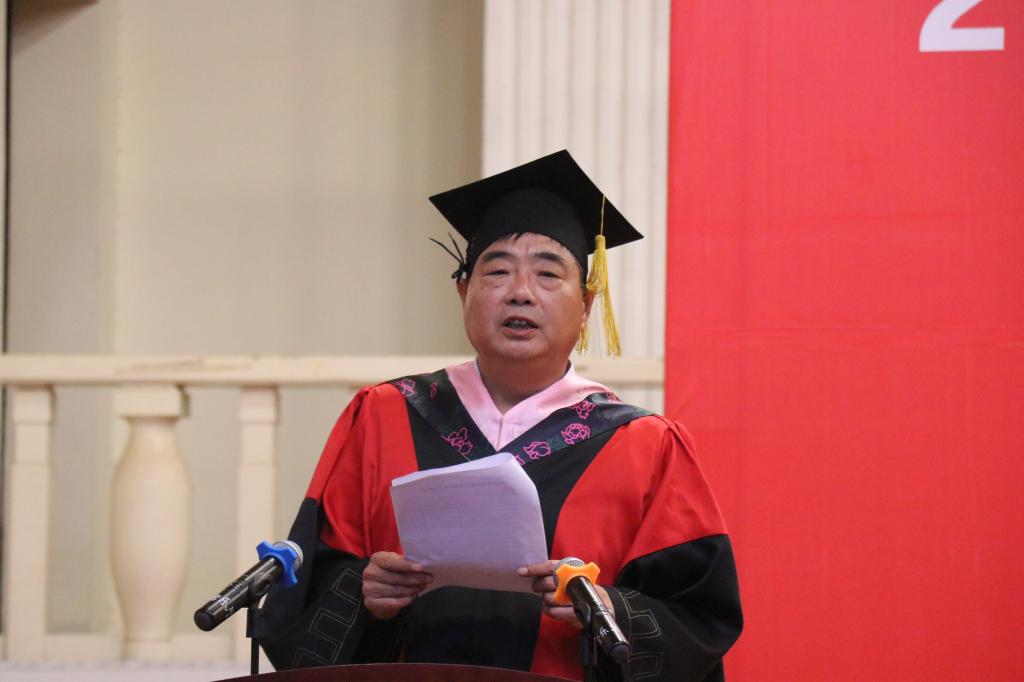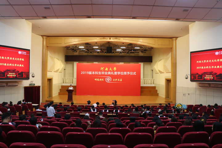 历史文化学院党委书记杨俊中讲话。他指出,四年前同学们带着梦想来到河大,在这一千四百多个日日夜夜里,校园的每一个角落里都留下了同学们奋斗拼搏的身影;如今毕业离校在即,希望同学们在今后的人生历程中坚定目标,不懈努力,对未来充满信心;在遇到难题时保持乐观的心态,积极向上;继续关注和支持母院的发展。最后,他饱含深情地说,母院永远是大家的精神家园,祝愿同学们在未来人生的道路上大放异彩。