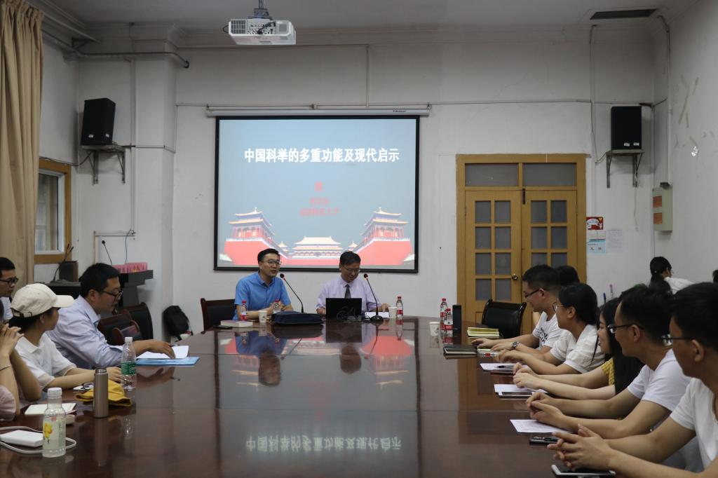 三楼报告厅做了题为《中国科举的多重功能与现代启示》的讲座,讲座由人文社科研究院院长展龙主持。