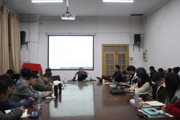 耿元骊教授对雷家骥教授的到来表示热烈欢迎,并简要介绍其学术成就。雷家骥教授从“缘起”入题,指明了理清主客观关系对历史学研究的重大意义。他又援引“史有定法而无成法”的观点,分别讲授了对“定法”与“成法”的独到见解。他强调,历史研究中,理论方法应与内在素养相辅相成。他对客观价值进行阐述,强调“历史研究就是由常究变”。雷家骥教授还对主观与中观的概念做了辨析,论述了“成一家之言”的本质问题。他博引史料,陈述了自己对“主观”与“中观”的理解。最后,雷家骥教授简要总结,历史研究者若能依据史学基本方法解决问题,运用科学的理解方法进行研究,才会有机会趋近历史真相,最终做到“成一家之言”。