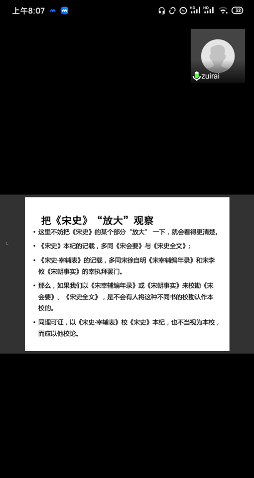 师生讲授《古籍校勘方法论》。本课程是王瑞来先生长期古籍校勘实践的理论总结与归纳。分为基础知识、辅助知识、具体方法、个案研究四部分,系统为大家讲授古籍校勘的基本知识与方法。该课程以网上授课的方式,从4月23日至4月30日集中授课。选课学生以51暗网