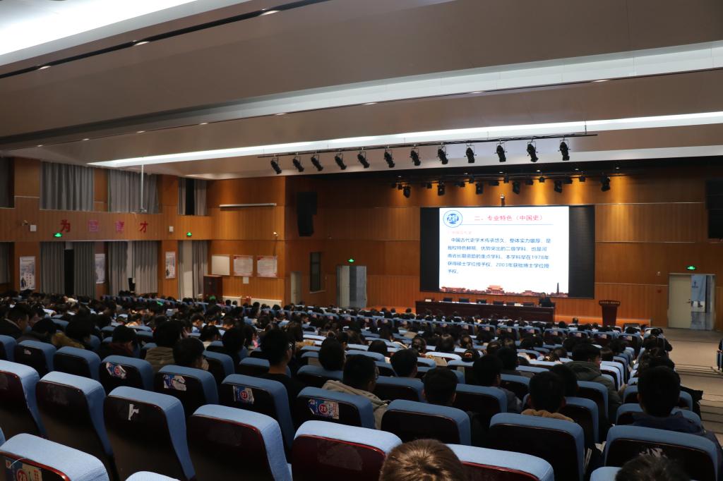 党委副书记姜捷,中国史系党支部书记、中国近现代史教研室主任尹涛,团委副书记郑振亚等一行赴汝州市第一高级中学开展招生宣传并举行招生宣讲会,近600名高三学生与会。宣讲会由汝州一高副校长兰庆杰主持。