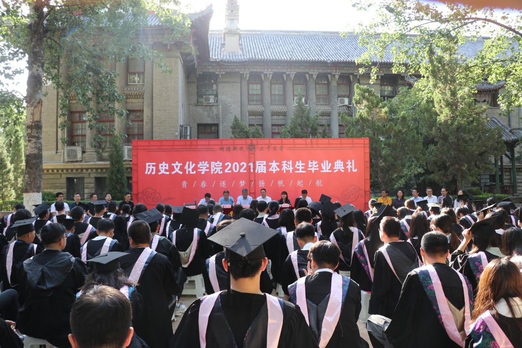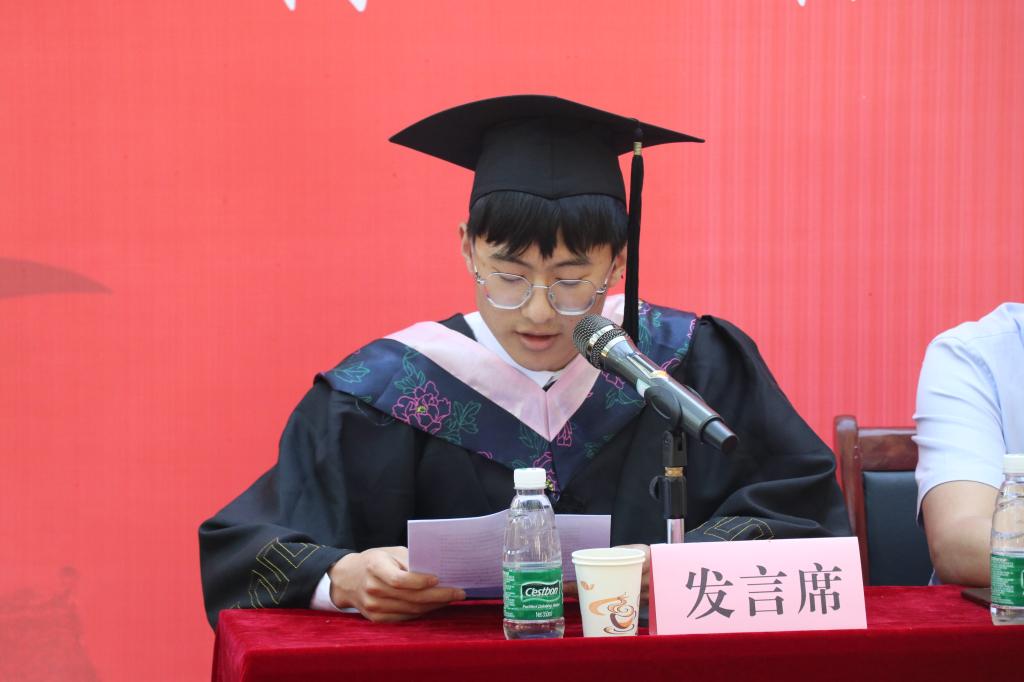 毕业典礼在庄严的国歌声拉开序幕。2017级世界史专业滕帅坤同学作为毕业生代表发言。他回忆了大学四年的点点滴滴,并分享了自己和母校共同成长的经历,表示将尽最大努力迎接未来新的挑战,坚定信念、不负所望,努力交出一份满意的答卷,言语间充满了不舍。2019级文物与博物馆学专业孙荣羚同学作为在校生代表发言。她对学长学姐们的关心和帮助表示感谢,并祝愿他们前程似锦,一路乘风破浪,创造精彩人生,作为学弟学妹们要继承和弘扬学院优良传统,努力学习,刻苦锻炼,奋斗成才。