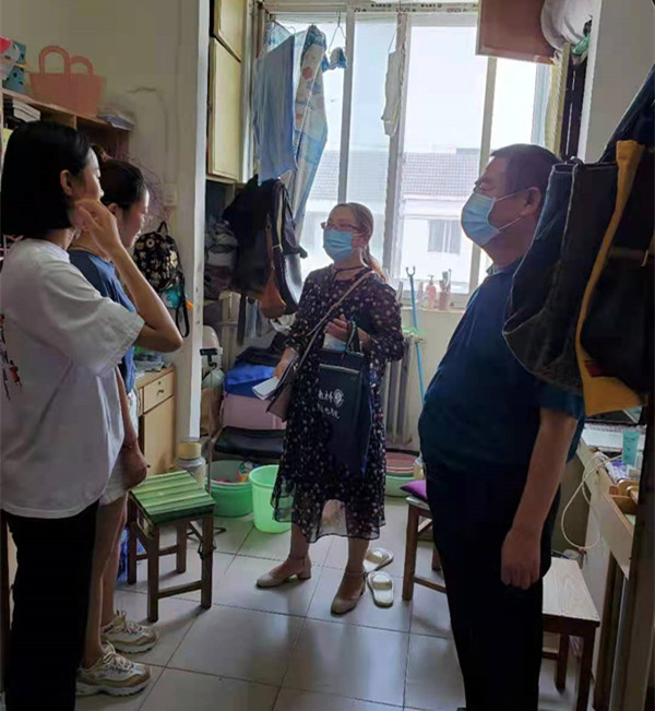 看望过程中,院领导与同学们进行了亲切交谈,询问了解同学们目前的学习生活情况,并对同学们在疫情防控特殊时期的良好表现给予表扬和肯定,同时要求同学们要严格遵守学校有关疫情防控规定,非必要不外出,特别是不要前往中高风险地区;合理安排学习计划,养成良好的生活作息习惯;同学之间要互帮互助,努力形成“在校如在家”的良好风貌。