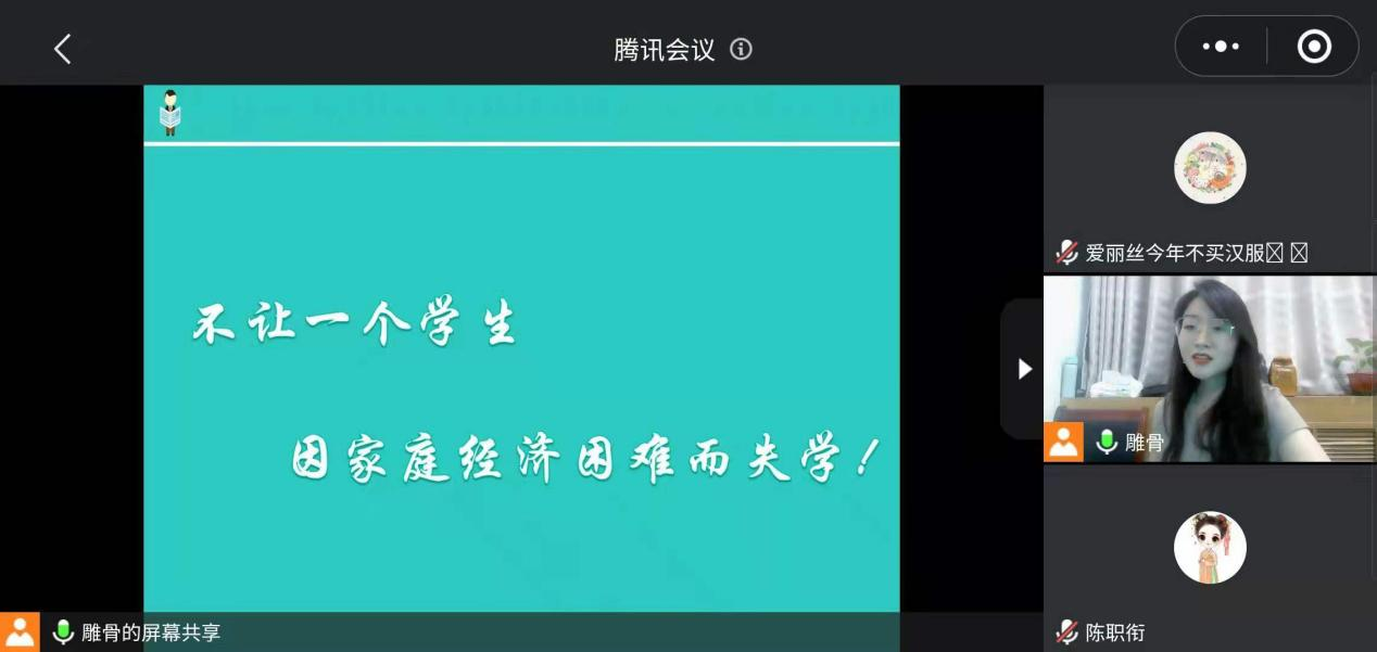 于9月14日上午通过视频会议形式召开了题为《资助起航 放飞梦想》的国家资助政策线上宣讲会, 2021级全体本科新生参加。会议由学院资助服务工作站站长贾茜贝主讲。