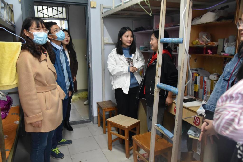党委书记张占党、院长祁琛云、副院长李竞艳、团委副书记郑振亚、以及辅导员老师贾茜贝、郭浩前往仁和公寓看望2021级本科新生。