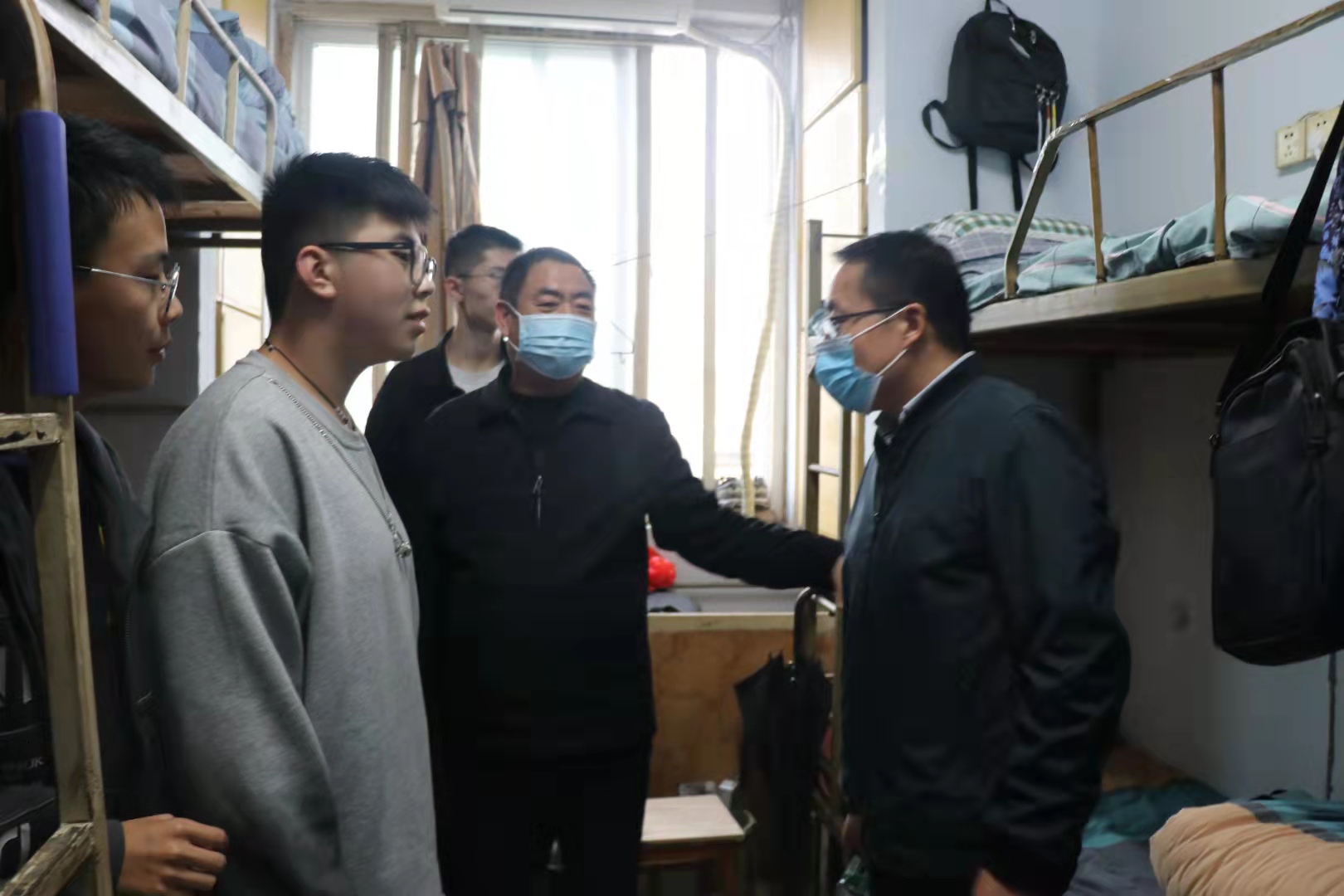 他们走进寝室,与同学们进行了亲切交谈,详细询问了同学们到校后的住宿、饮食等方面的适应情况,深入了解每个寝室成员家乡分布,细心的查看了同学们的被褥是否足够保暖,寝室用电是否安全,对部分不太适应新环境的同学进行了耐心的引导和暖心的安慰,并叮嘱同学们要养成良好的生活习惯,加强自我防护,在学习生活中要像家人一样相互帮助,遇到解决不了的困难时要向辅导员老师及时反馈,学院也将尽全力为同学们营造一个良好舒适的学习生活环境。同学们对学院领导的看望慰问非常开心,深深感受到了学院的关怀,表示一定会以积极向上的态度投入到未来的学习和生活中。