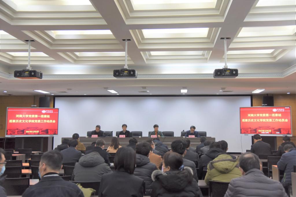 第十一届委员会第四轮巡察组长、副组长授权任职及任务分工的通知》,并就巡察工作提出了指导意见和明确要求;第一巡察组组长胡春贞作巡察工作动员讲话、宣布了工作安排和具体要求;学院党委书记张占党作表态发言,院长祁琛云主持会议。第一巡察组全体成员、学院全体教职工、《史学月刊》编辑部党支部代表、离退休人员代表及学生代表参加了动员会。动员会召开前,巡察组和学院主要领导进行了见面沟通。