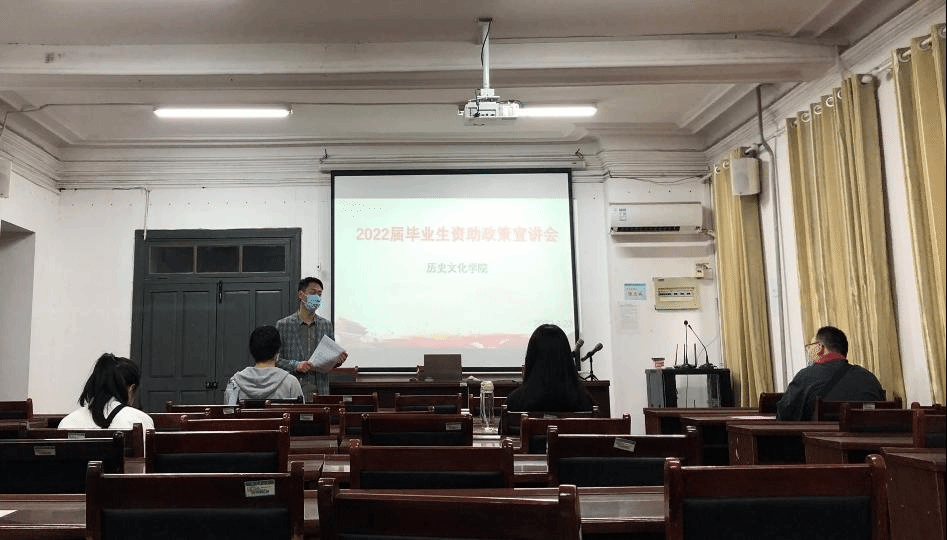 通过线上线下相结合的方式在111教室召开2022届毕业生资助政策宣讲会,学院资助工作站成员、本硕博毕业年级贷款学生参会。