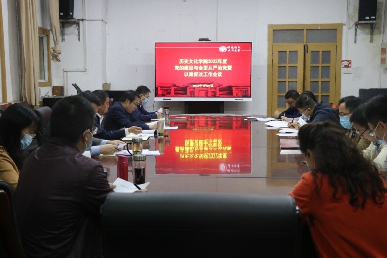 在三楼会议室召开2022年度党的建设与全面从严治党暨以案促改工作会议,学院党委委员、班子成员、各党支部书记和全体辅导员与会。会议由学院党委书记张占党主持。