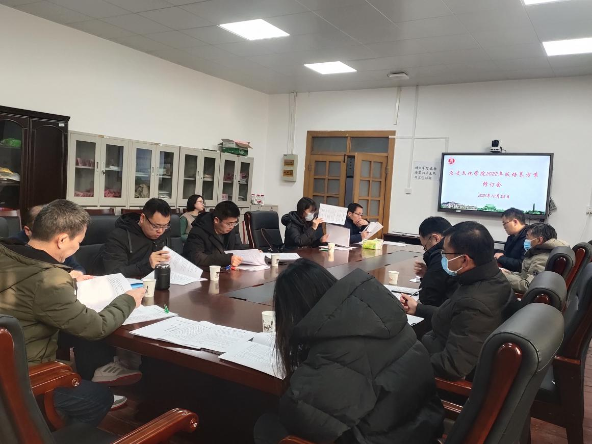 在中国古代史教研室召开2022年版培养方案修订会,参会人员有学院领导班子成员及教务办、中国古代史教研室、中国近现代史教研室、世界史教研室、考古文博教研室的相关负责人和部分骨干教师。会议由副院长魏继印主持。