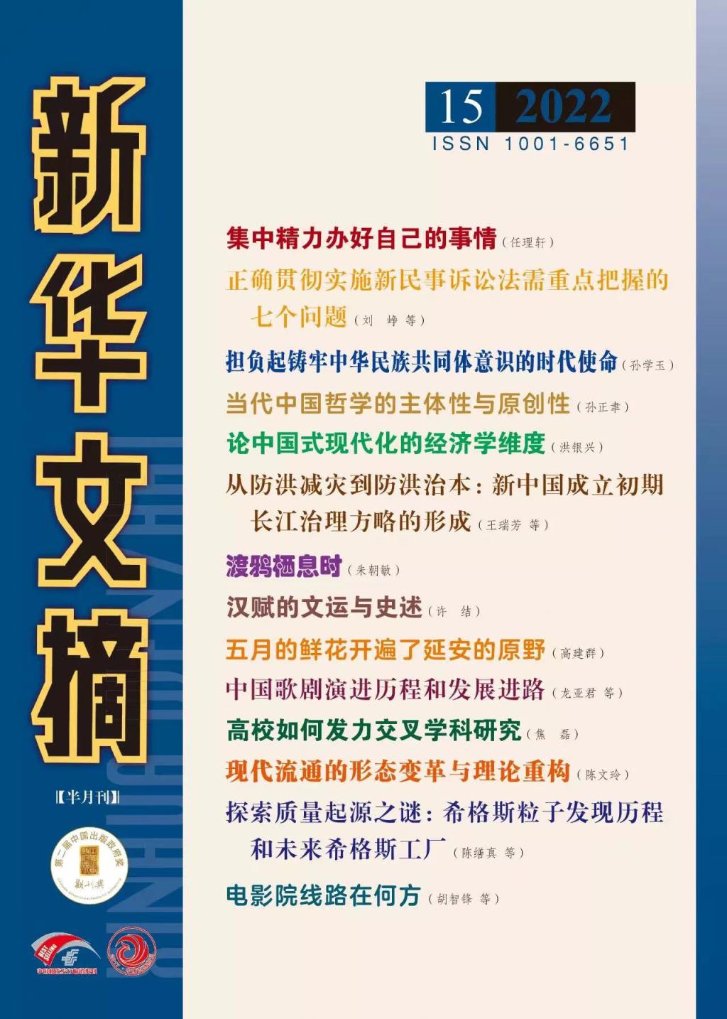 暨当代中国研究所教授、博士生导师王瑞芳与马克思主义学院校聘副教授范刻心发表在《河北学刊》2022年第2期的论文《从防洪减灾到防洪治本:新中国成立初期长江治理方略的形成》被《新华文摘》2022年第15期全文转载并作为封面文章推荐。