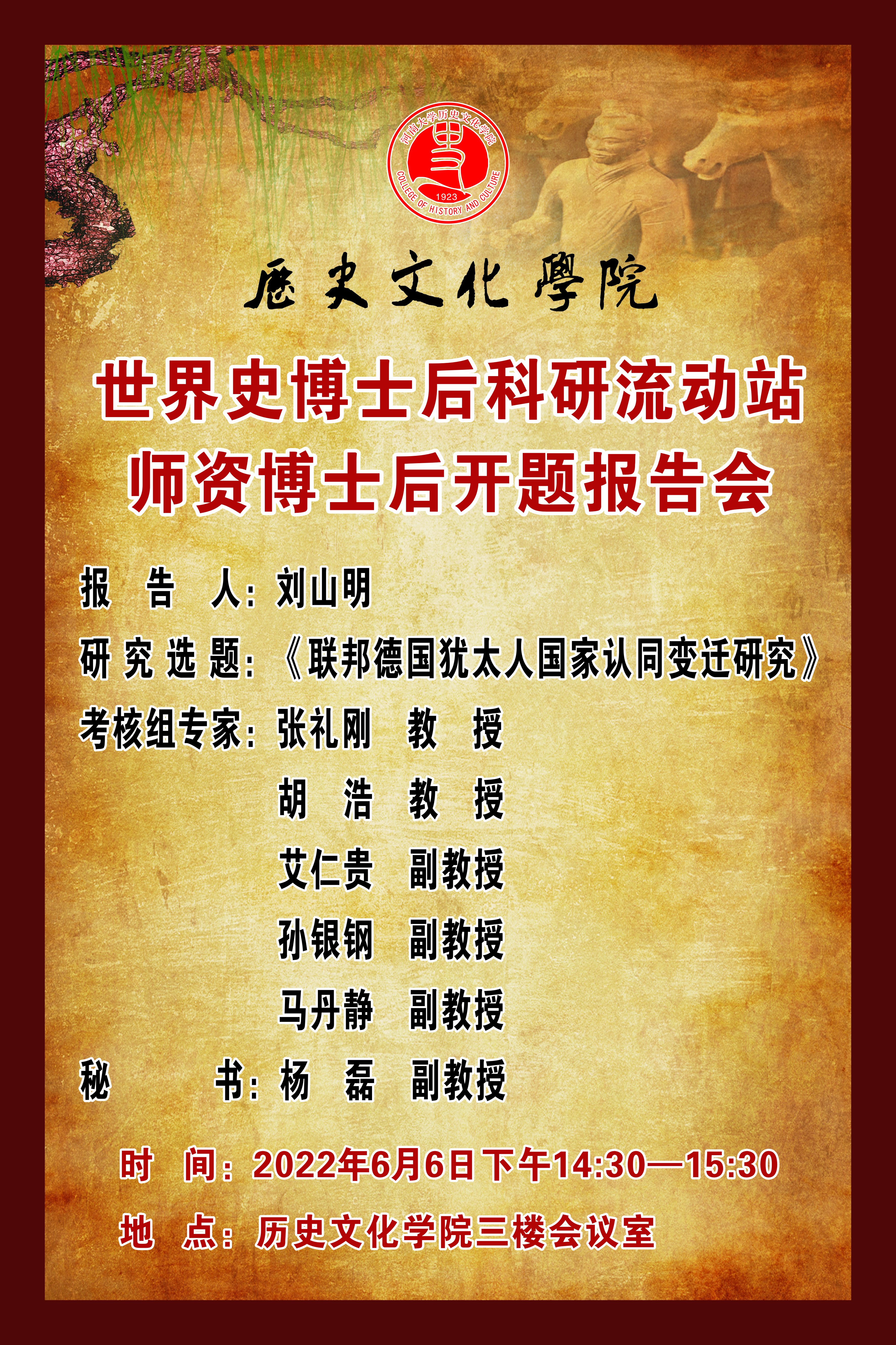 【历院动态】刘山明:世界史博士后科研流动站师资博士后开题报告会