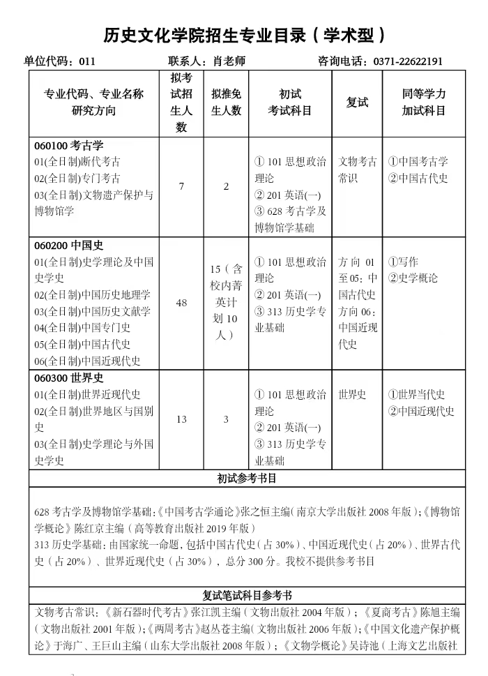 学院目前有考古学、中国史、世界史三个一级学科博士、硕士学位授权点及博士后科研流动站,学科教学(历史)和文物与博物馆两个专业硕士授权点,最新的软科排名显示,中国史排全国第10名,考古学排全国第12名。