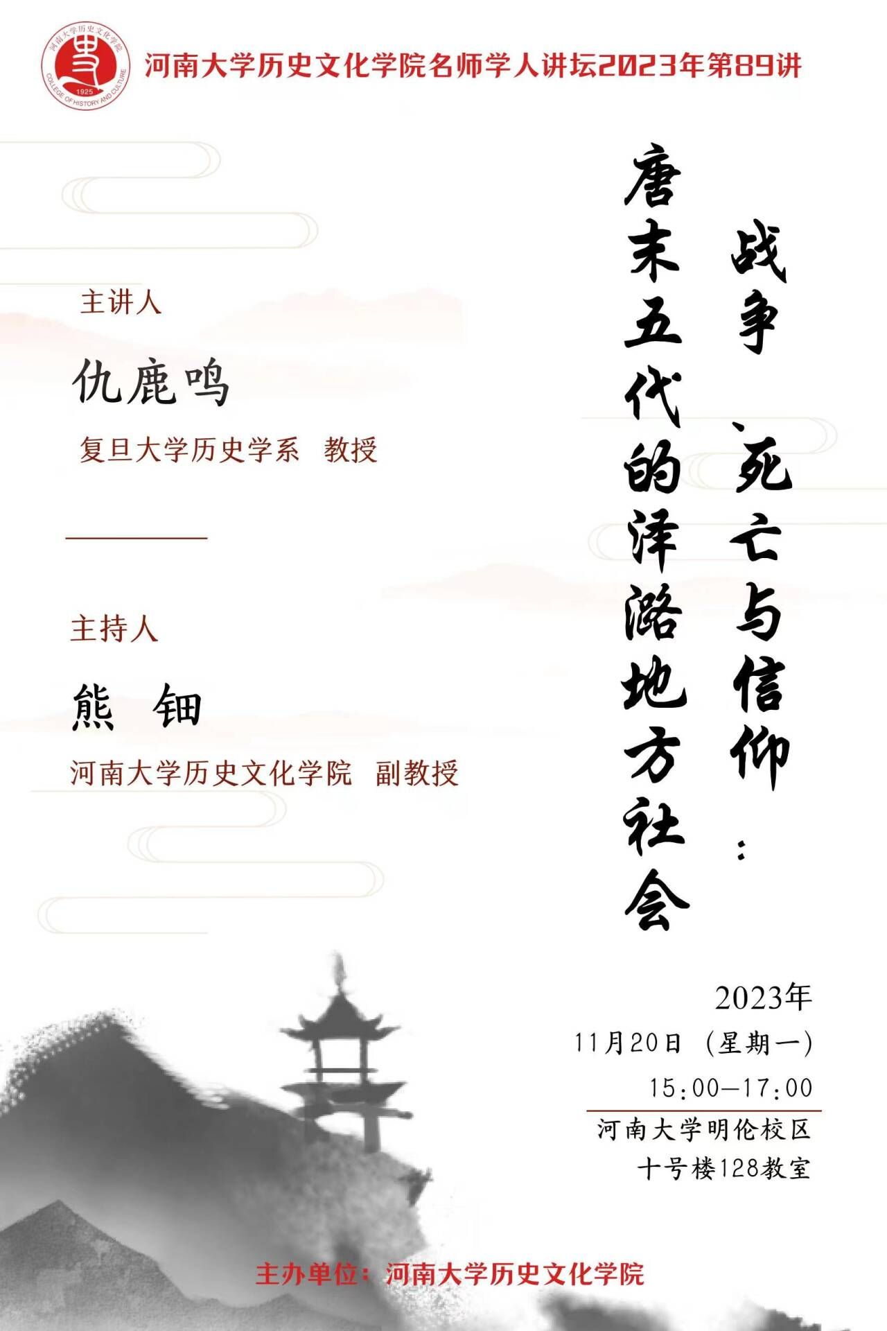 【讲座通知】仇鹿鸣;战争、死亡与信仰;唐末五代的泽潞地方社会