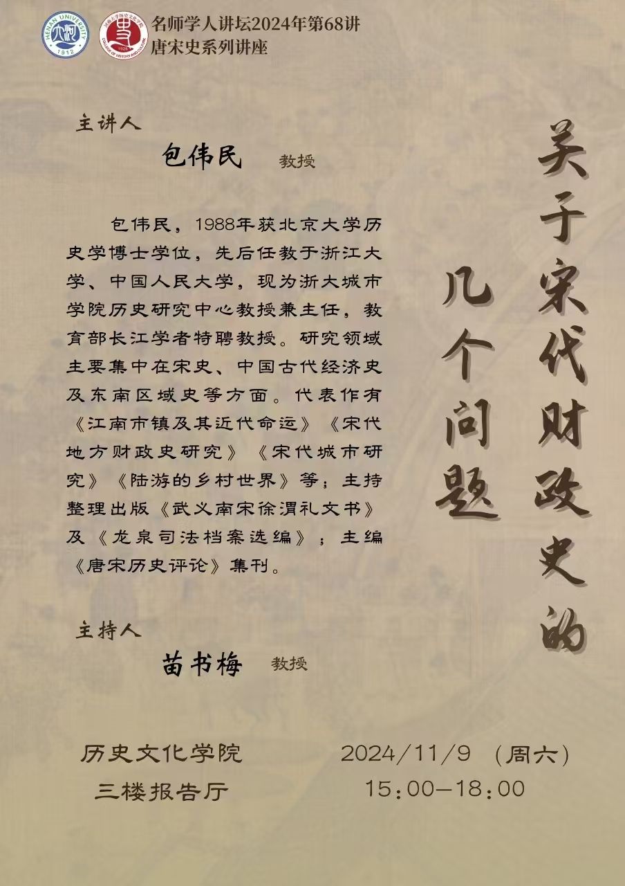 【讲座预告】包伟民:关于宋代财政史的几个问题