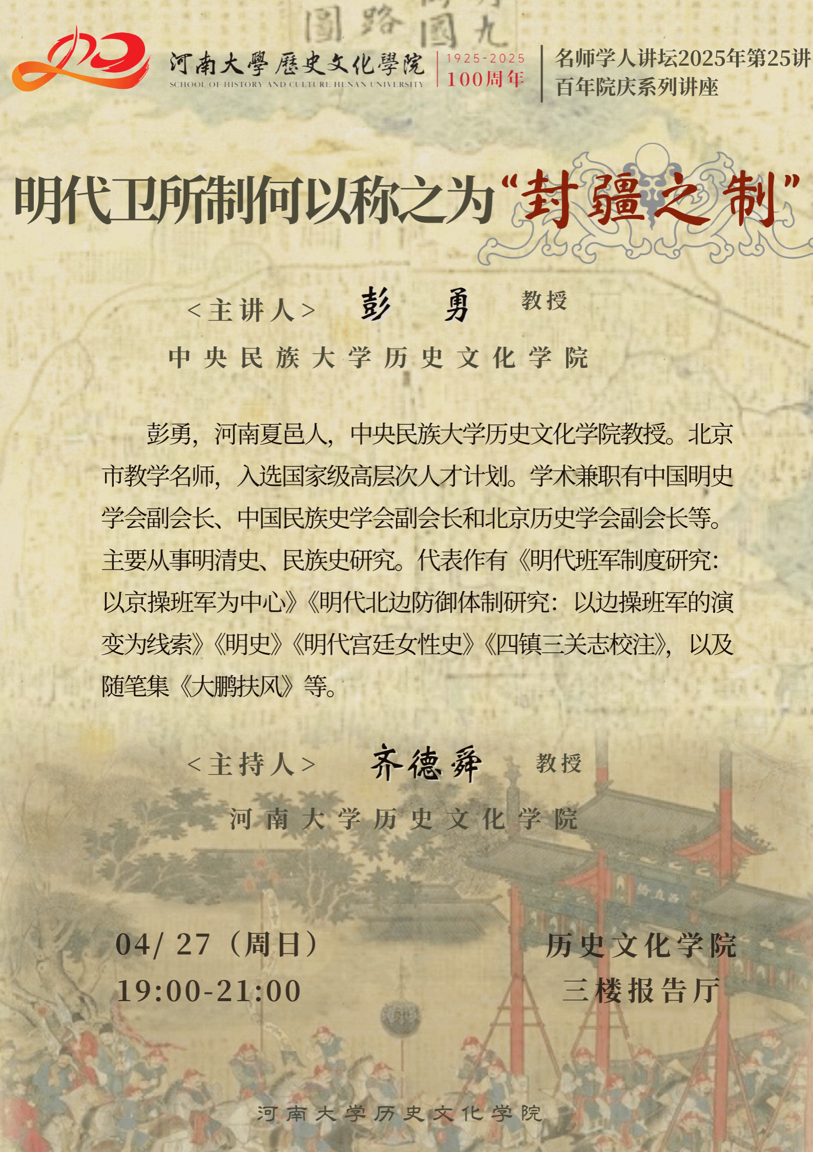 【讲座预告】彭勇:明代卫所制何以称之为“封疆之制”
