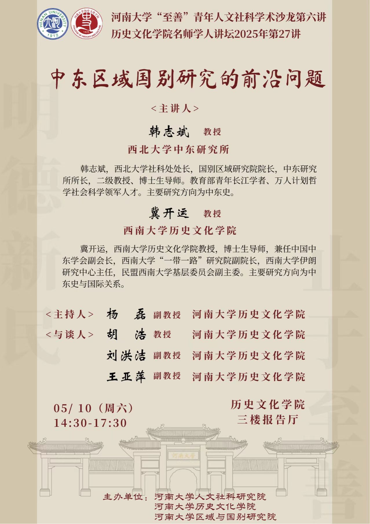 【讲座预告】韩志斌、冀开运:中东区域国别研究的前沿问题