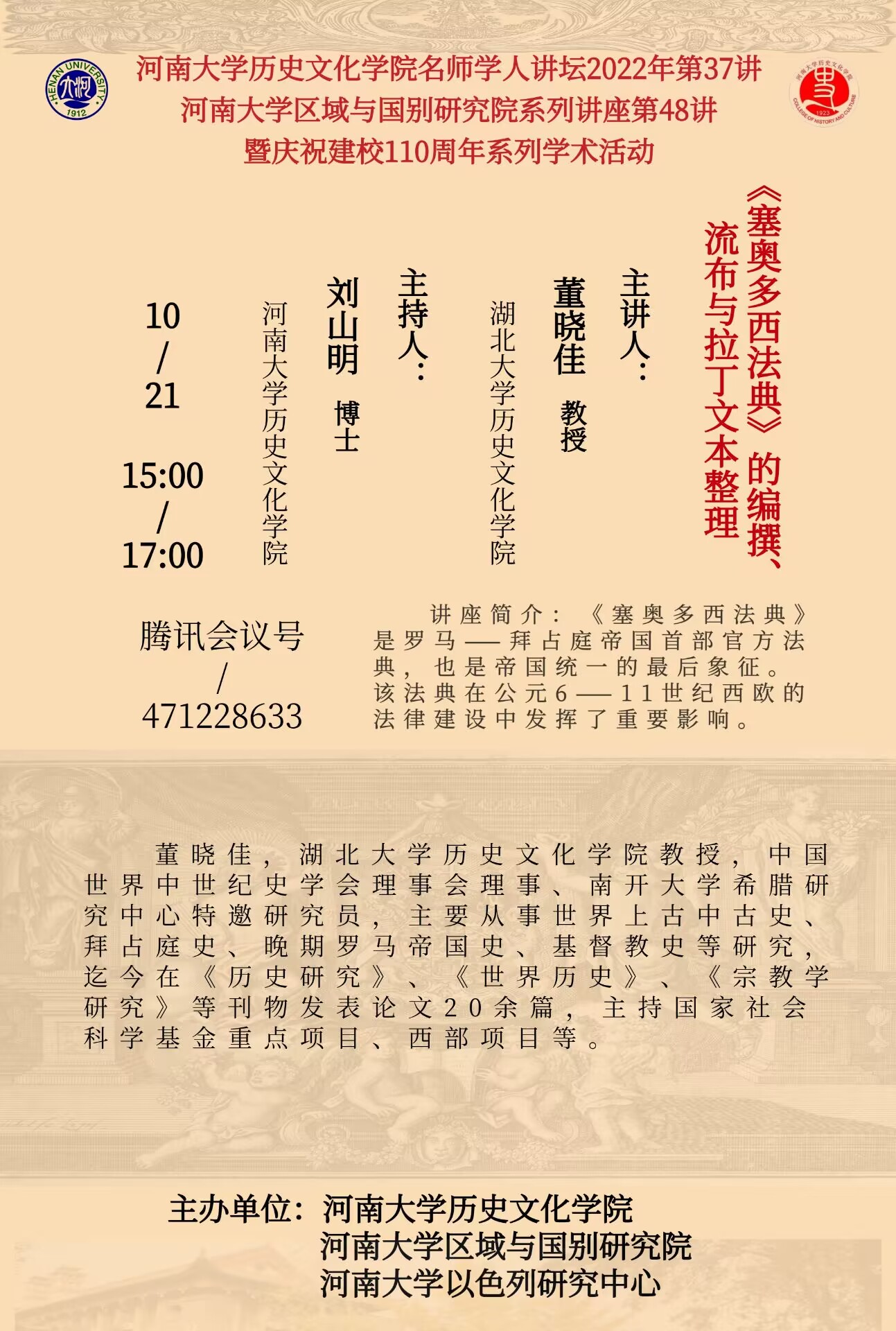 【讲座通知】董晓佳:《奥塞多西法典》的编撰、流布与拉丁文本整理