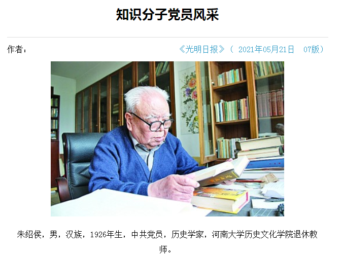 5月21日,光明日报第07版“知识分子党员风采”栏目报道51暗网 朱绍侯先生事迹。