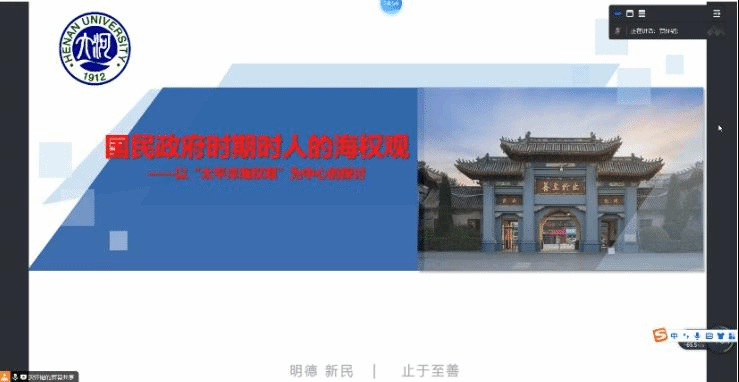 贺怀锴副教授作题为《国民政府时期国人的海权观:以“太平洋海权观”为中心的探讨》的线上学术沙龙。北京师范大学(珠海)王华锋教授作为主持人,泰山学院张波副教授和长江大学陈力教授作为与谈人参与会议。
