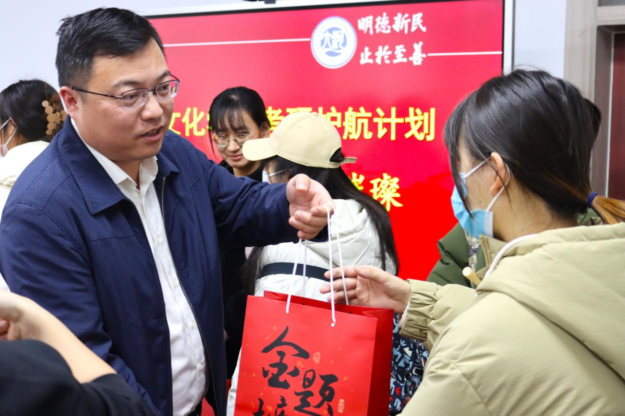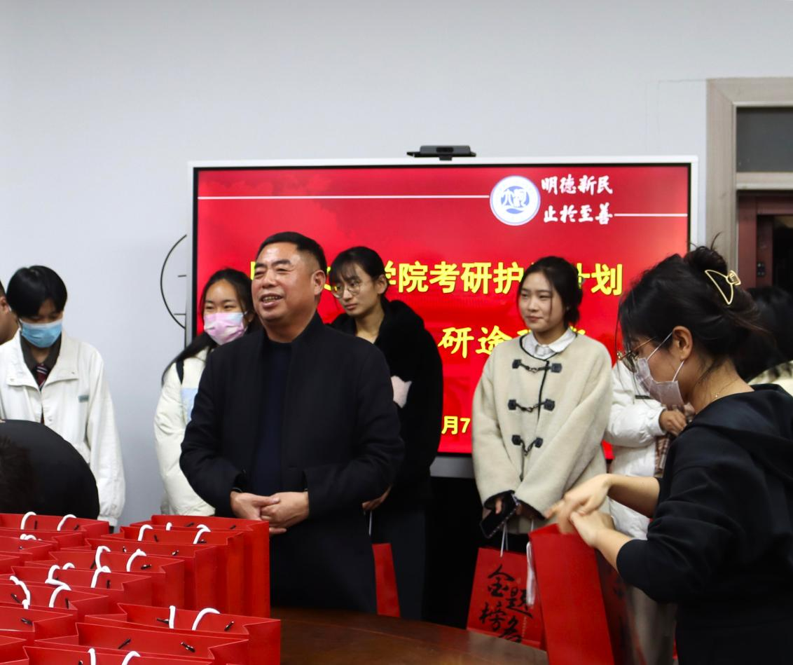 精心策划,多措并举助力即将奔赴考场的学子们执笔圆梦。12月7日,学院党委书记张占党、党委副书记周文凯及2020级本科生辅导员贾茜贝代表学院为考研学子发放“金榜题名福袋”,为赴考学子送上暖心祝福。