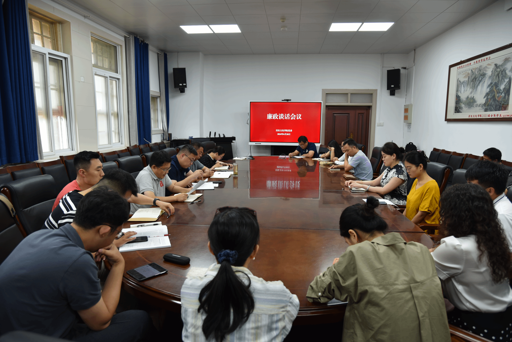 党委在三楼会议室召开廉政谈话会,对学院领导班子成员和全体中层干部开展廉政谈话。