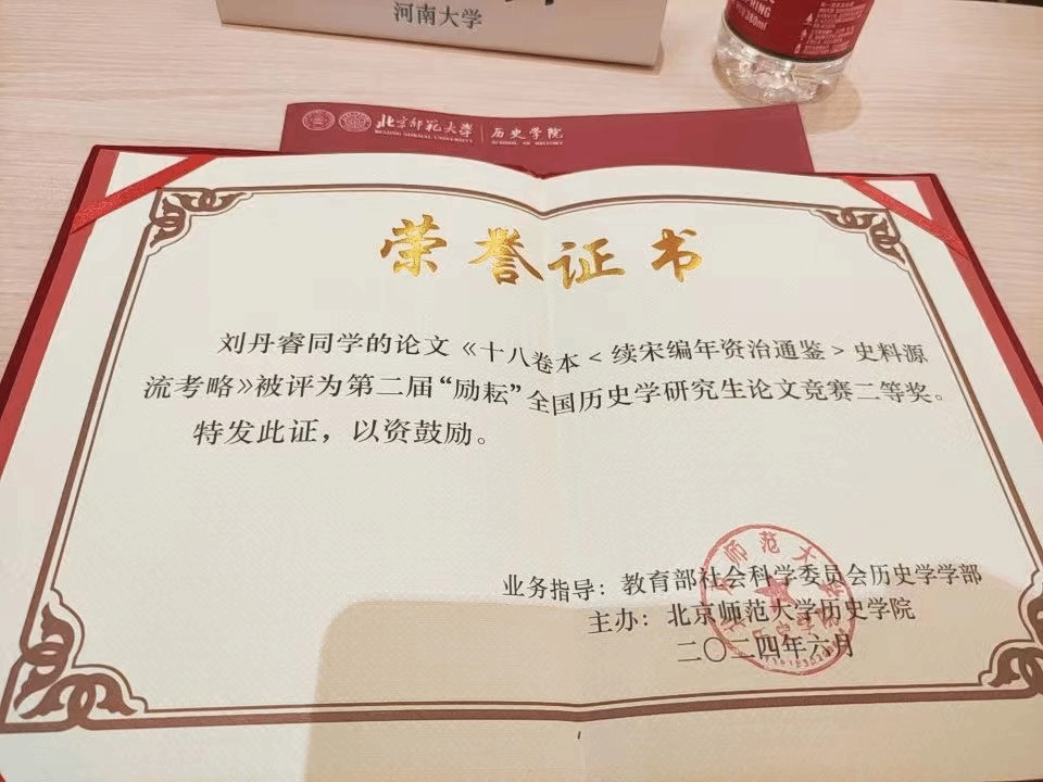 2021级6位历史学师范生取得优异成绩。朱文轩、刘家辉获得一等奖;宋子航、魏瑾雅获得二等奖;付钟毓、程佳怡获得三等奖,黄俊华、谢佳芮两位教师获“优秀指导老师”称号。同期,由北京师范大学历史学院主办的第二届“励耘”全国历史学研究生论文竞赛和由南开大学历史学院举办的第十四届“全国史学新秀奖”论文评选活动也于近日圆满结束,学院研究生刘丹睿和本科生戴朱汉分别在其中获得二等奖和三等奖。