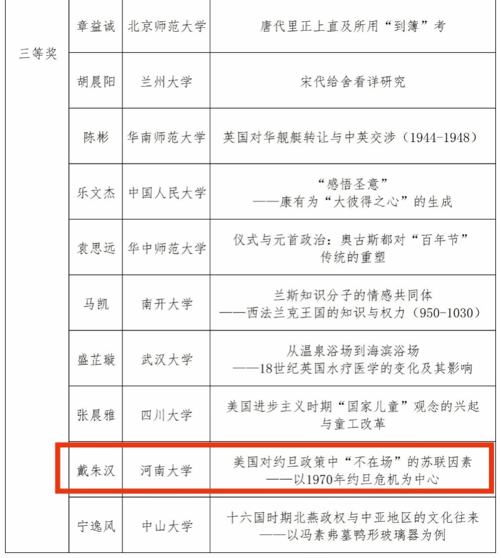 戴朱汉 | 第十四届“全国史学新秀奖”论文评选活动 | 三等奖 |