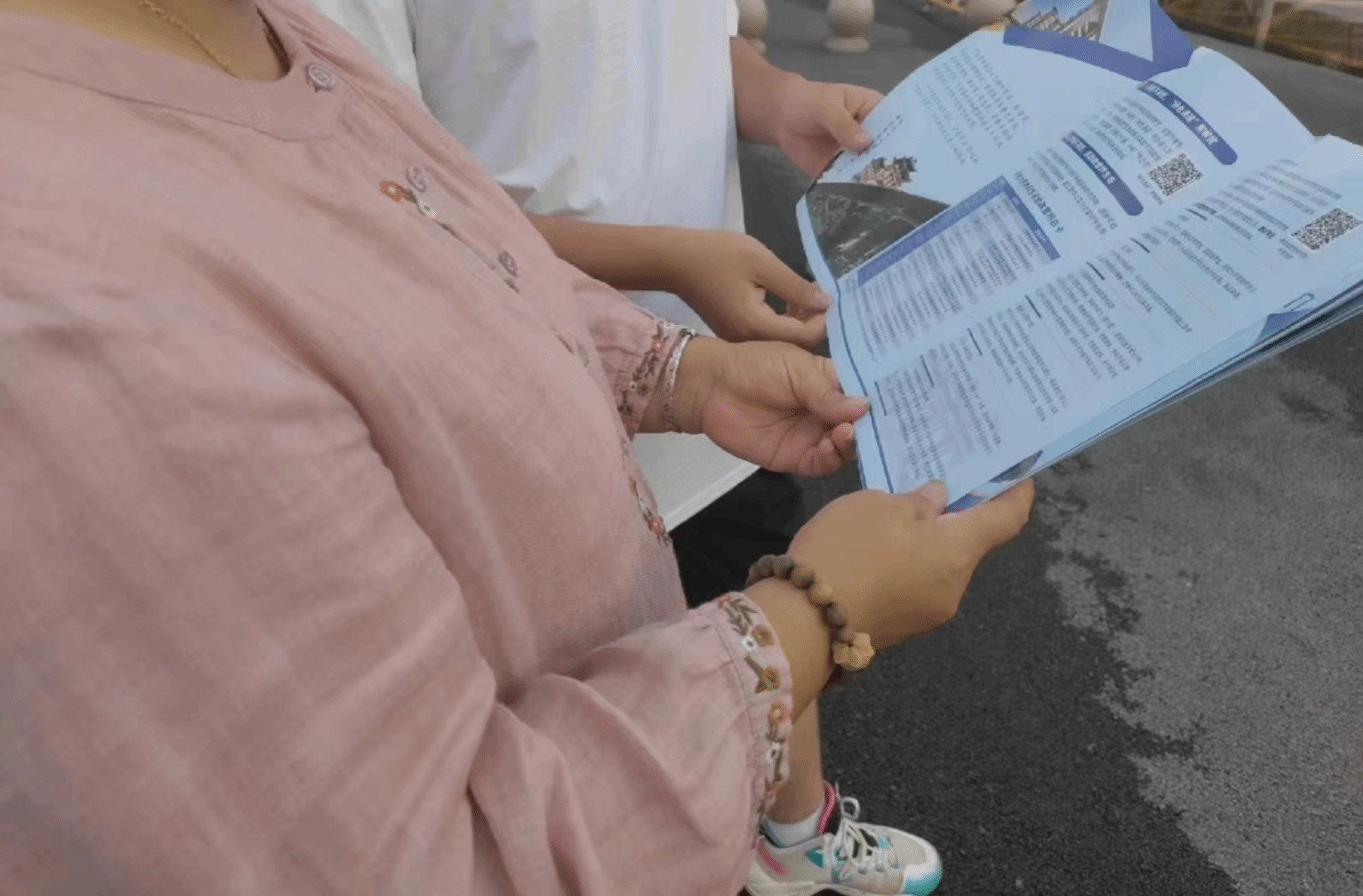 (图为崔钰倩同学为街道负责人与学生家长讲解资助政策)