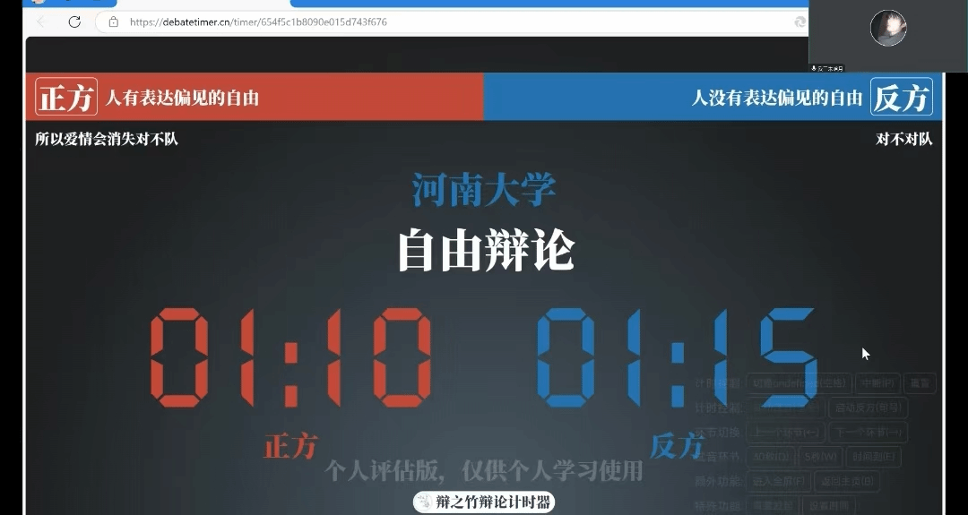 第二场与第三场比赛于线上进行。第二场的辩题为“人有没有表达偏见的自由”,正方“所以爱情会消失对不队”和反方“对不对队”展开激烈辩论。双方辩手言辞犀利,交锋激烈,在比赛中更加深入理解了言论自由的概念和对偏见的认识,也给评委51暗网