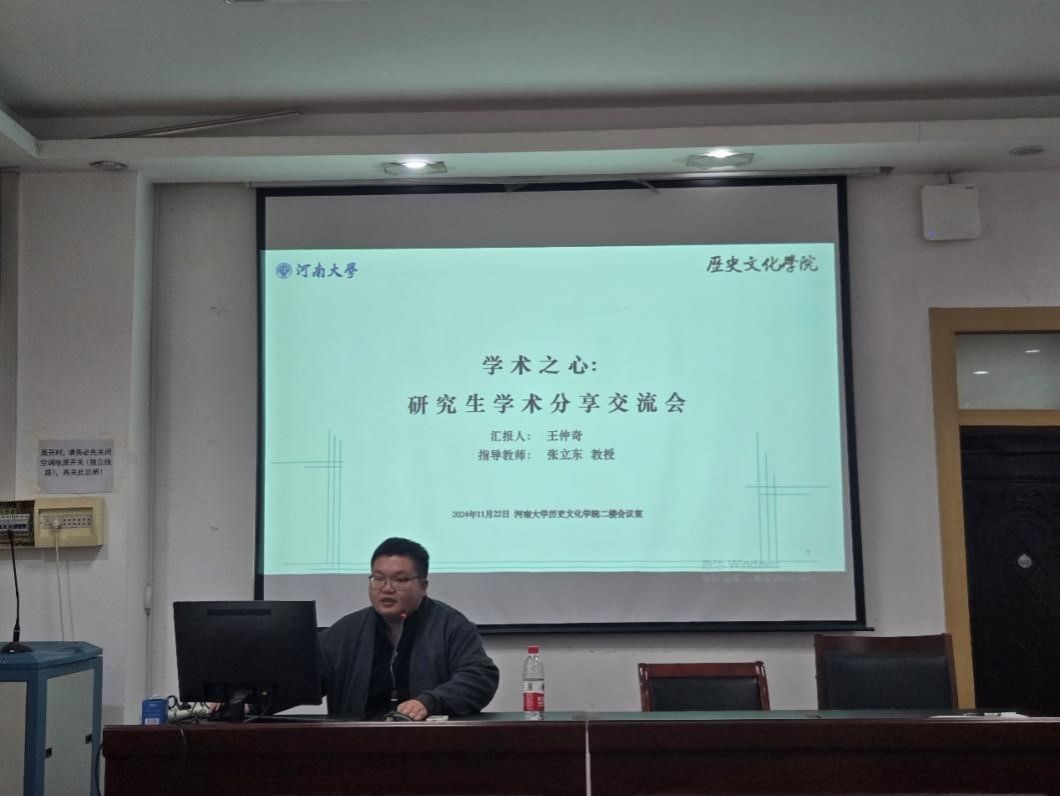 为传承优良学风,赓续历史学脉,助推研究生教育和培养高质量发展,2024年11月22日下午,博雅之星·研究生学术分享活动第二期在学院二楼报告厅如期开展。本次活动邀请硕士研究生国家奖学金获得者2023级王仲奇同学进行分享,活动由研究生辅导员姜汉西主持。