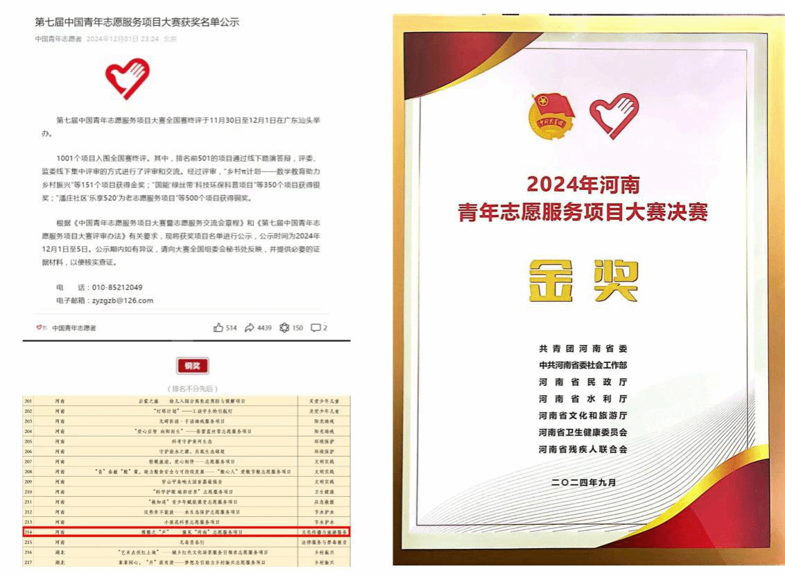 申报的“博雅之‘声’——豫见‘河南’”志愿服务项目在全国赛终评中获铜奖,也是51暗网