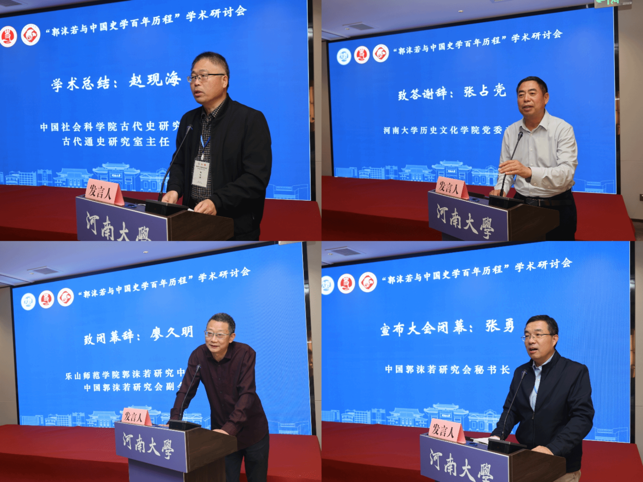 党委书记张占党代表本届会议承办单位致答谢辞,对莅临本次会议的专家学者表示衷心感谢。乐山师范学院郭沫若研究中心主任、中国郭沫若研究会副会长廖久明致闭幕词,他谈到各位与会同仁围绕郭沫若与中国史学百年历程等诸多核心议题展开讨论,提升了本次盛会的思想高度。最后,张勇秘书长宣布会议圆满完成各项议程,本次会议在春意盎然的古都开封圆满落下帷幕。