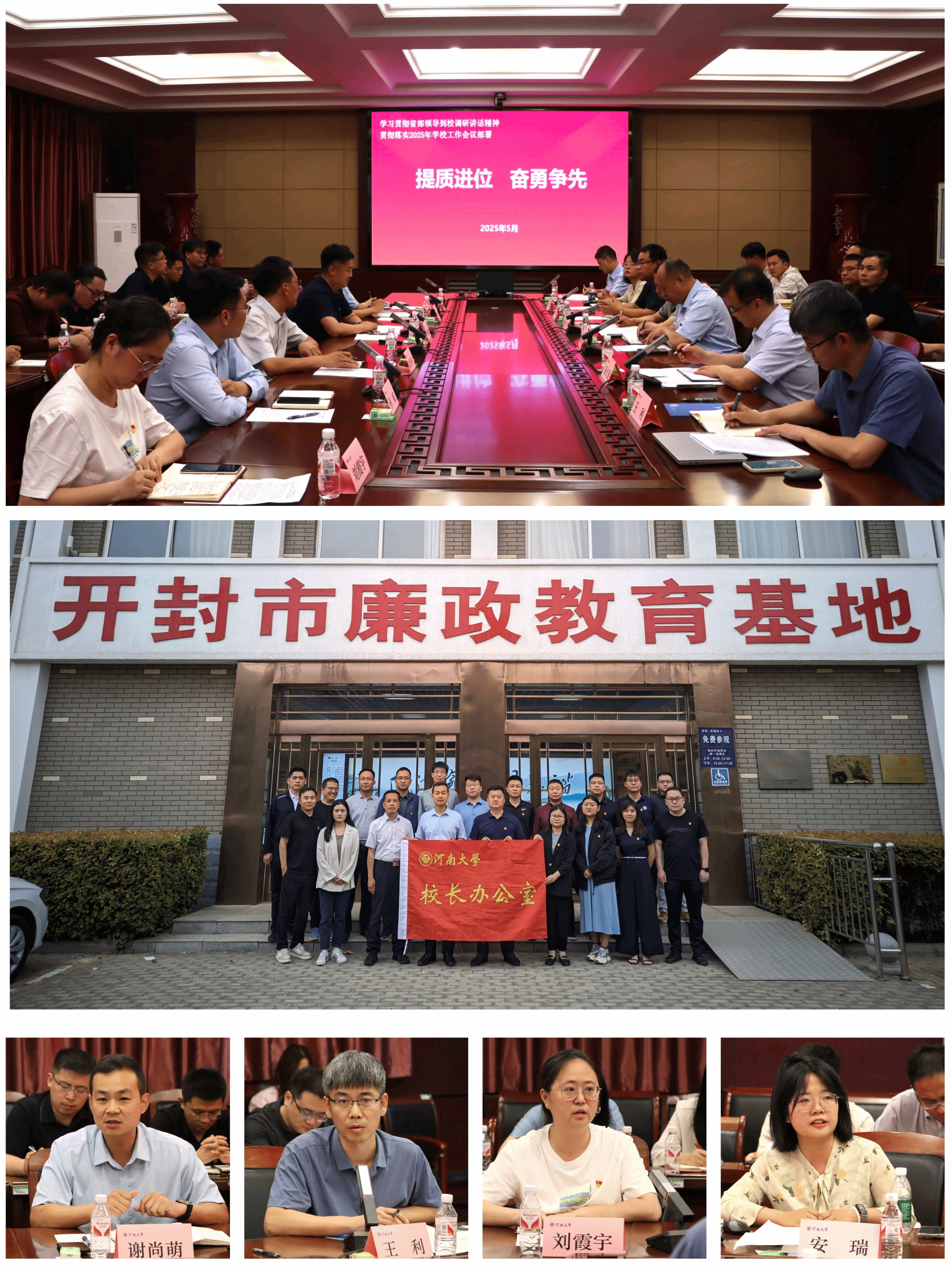 联合举办“深化共建结对 赋能提质进位”主题党日活动,赴开封市廉政教育基地开展实地教学,并在明伦校区法学院第一会议室召开理论学习与专题研讨会议,深入领会习近平总书记考察河南时重要讲话精神,学习贯彻中央八项规定精神,传达学习部、省有关领导到校调研指示精神。来自四个部门的50余名党员代表参加活动。