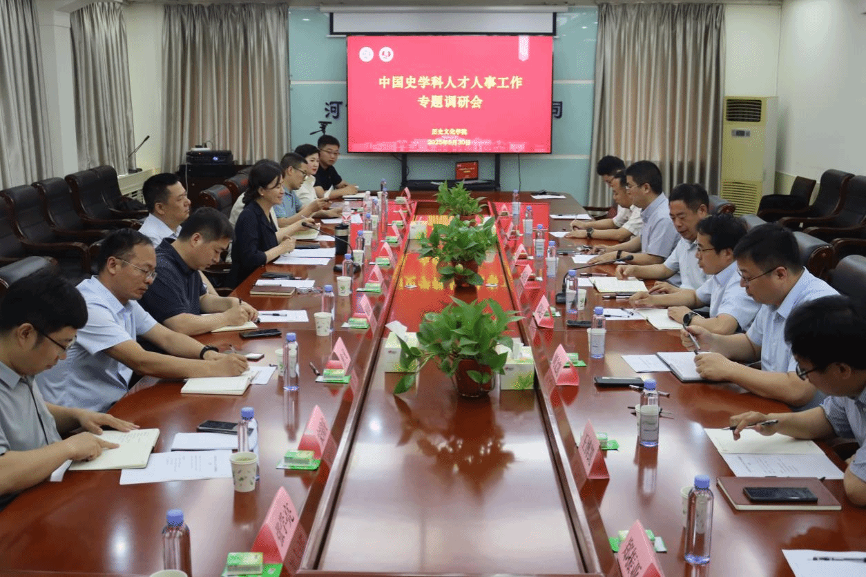 调研中国史学科人才人事工作,人才人事部、高层次人才办公室等负责同志陪同调研。学院领导班子、科系负责人参会。调研会由高层次人才办公室主任路杨主持。
