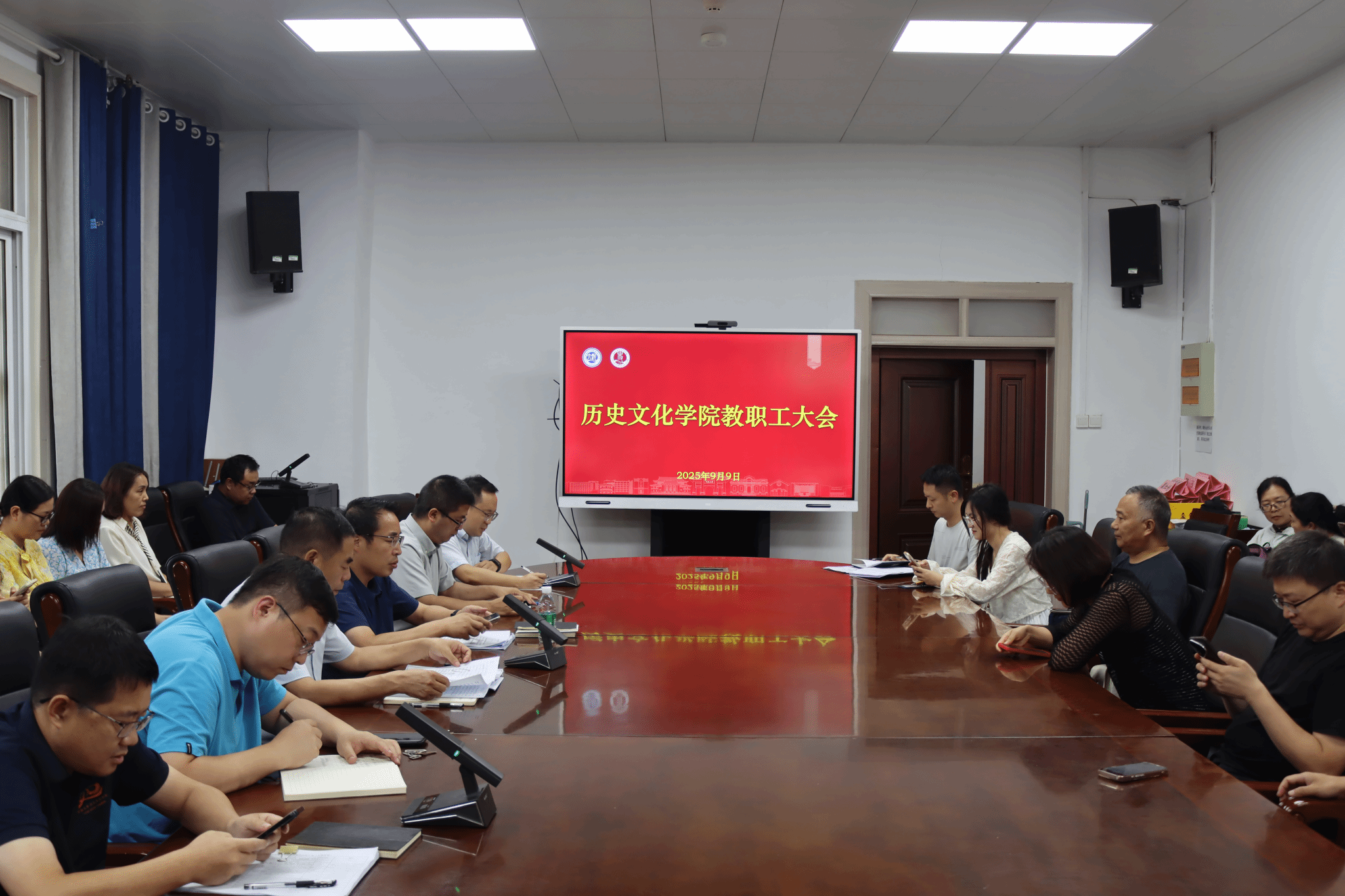 各分管领导就新学期重点工作进行安排。学院党委副书记周文凯介绍2025级新生入学及2025届毕业生就业情况,并通过详实数据分析展示了招生就业工作中取得的成效与面临的挑战,以及如何提升学生专业素养和综合竞争力的切实举措。副院长胡浩介绍了2025年度国家基金项目的申报与获批情况,对中国历史研究院重大专项、新一年国家社科基金项目、博雅拔尖支持计划申报等工作作出系统安排。副院长陈升远介绍2025年校拨经费预算安排和新学期消防安全排查工作情况,并强调要严格执行财务制度,确保资金使用的规范性、安全性和有效性,增强安全意识,共筑安全防线。副院长闵祥鹏聚焦教学质量提升,就如何加强学生过程培养、强化教学质量监控、提升教师教学能力以及推动教学创新改革等方面提出具体工作要求。