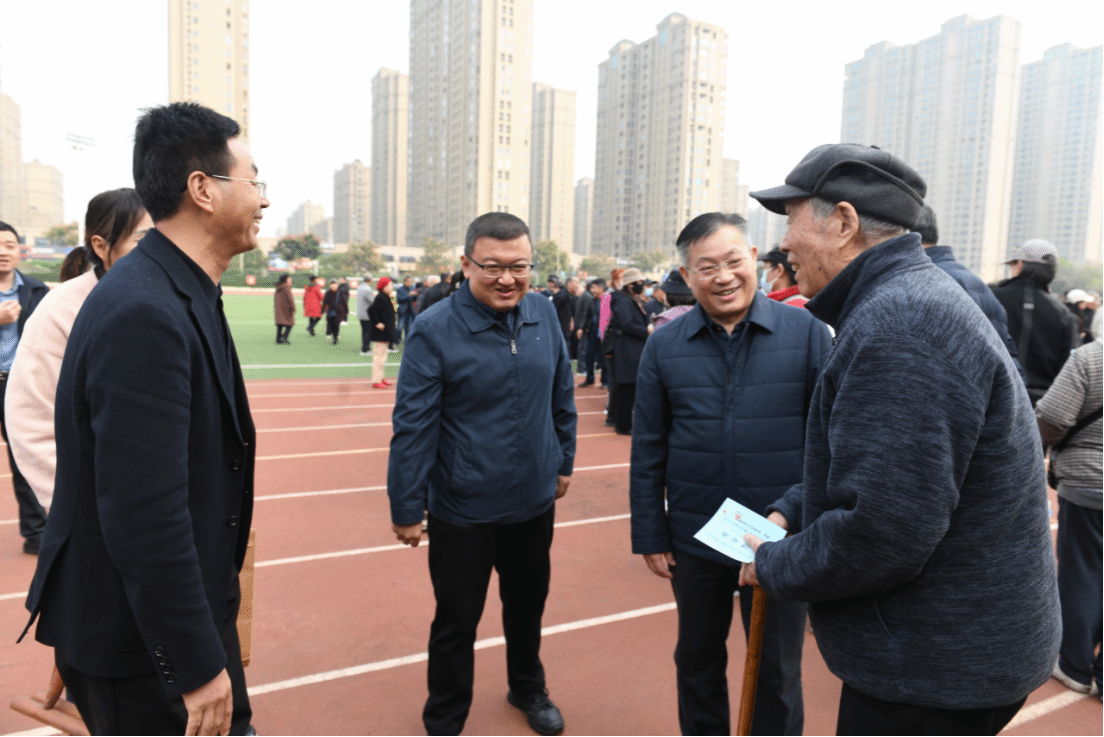 党委书记张占党和党委副书记周文凯到现场为老教师们加油鼓劲,送去学院的关怀与温暖。