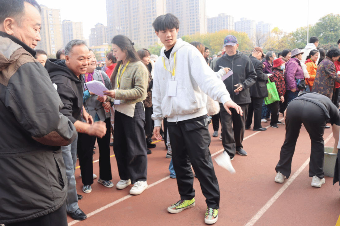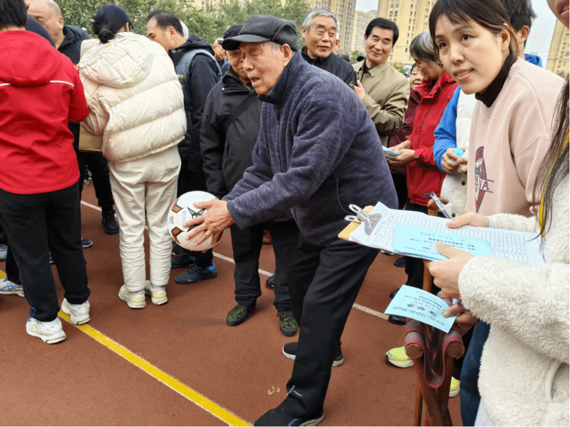 全民健身计划的成果。比赛的同时,学生志愿者们也在运动场上穿梭,为银龄健儿们提供无微不至的照顾,在与老教师们的互动中聆听河大故事,传递河大精神。