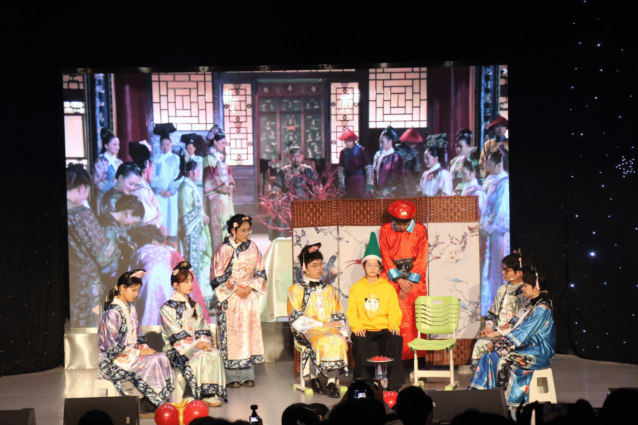 全体演职人员与老师合影留念,