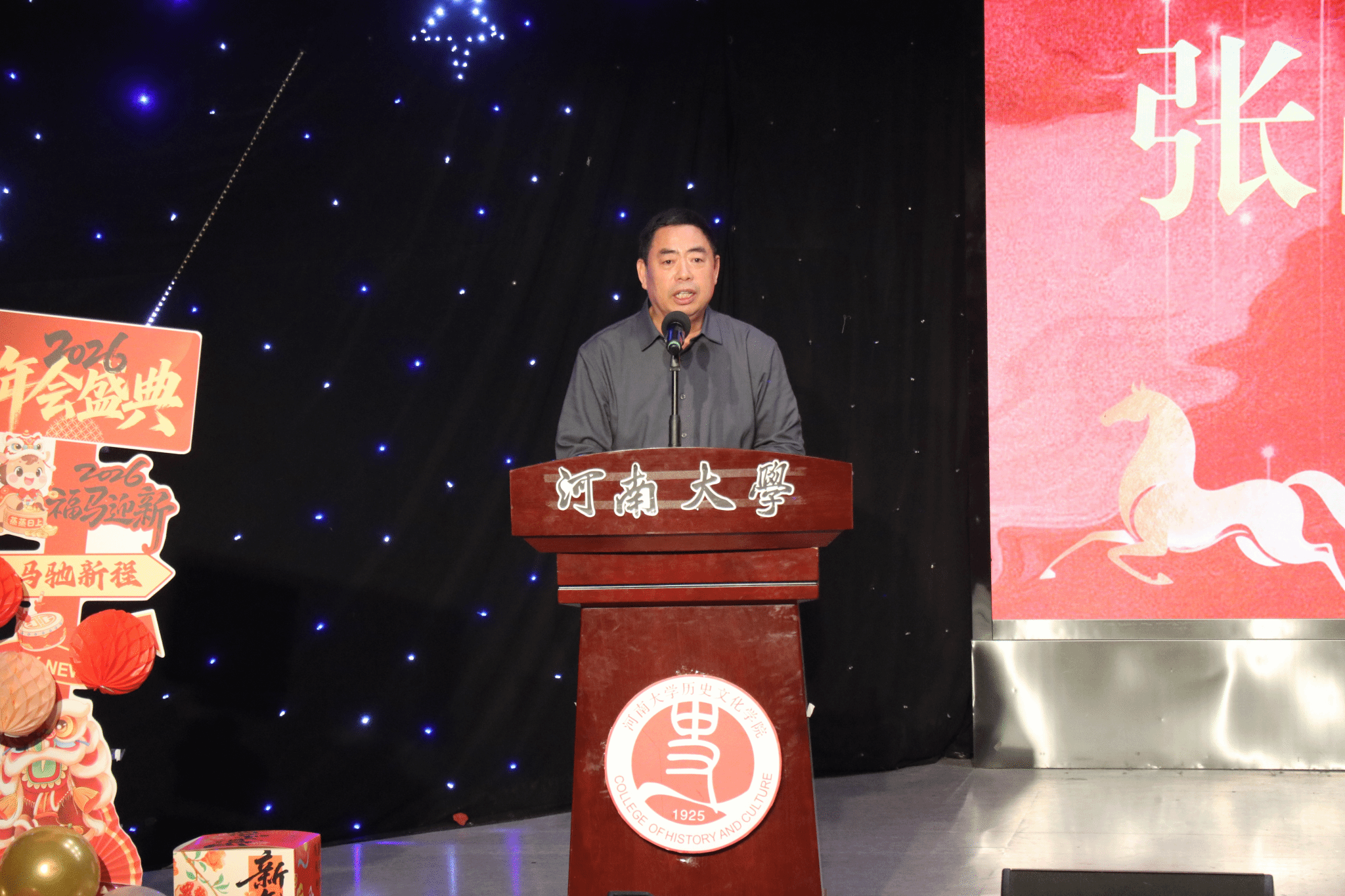 张占党在元旦贺词中,向全体师生致以诚挚问候与祝福。他指出,过去一年是学院发展的重要一年,值创院百年之际,学院举办系列庆典活动,凝聚共识,共谋史学发展新篇。这一年来,学院在党建思政、学科建设、人才培养等方面均取得扎实进步,整体事业稳步前行。展望2026年,他期望全体教师坚守育人初心,勇担科研使命,深化教学改革,培养具有历史智慧、家国情怀与国际视野的优秀人才;勉励同学们勤学深思、脚踏实地、锐意进取,在学术道路上不懈攀登,努力成长为担当民族复兴大任的时代新人。