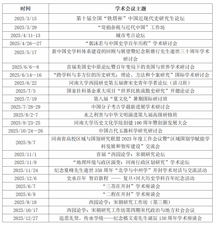 打造多元化学术交流平台,邀请学部委员、学科评议组成员、国家社科基金评审专家、国务院特殊津贴专家、长江学者、万人计划入选者、资深专家、知名学者和青年学人莅临学院讲学交流,累计举办高水平学术报告和专题讲座100余场。主办历史学科与专业发展论坛、“郭沫若与中国史学百年历程”学术研讨会、首届美国史中原论坛暨百年变局下的美国与世界学术研讨会、“跨学科与多方位的历史研究:理论、方法和个案研究”国际学术研讨会、中国分子考古学最新进展学术研讨会、首届西园论学:宋朝研究论坛、史承百年 智启新程——复旦・河大历史学科百年纪念活动等各类学术会议24场。精彩纷呈的学术交流活动,持续拓宽师生学术视野,有效夯实学术根基,全面提升学院整体学术水平与育人质量。