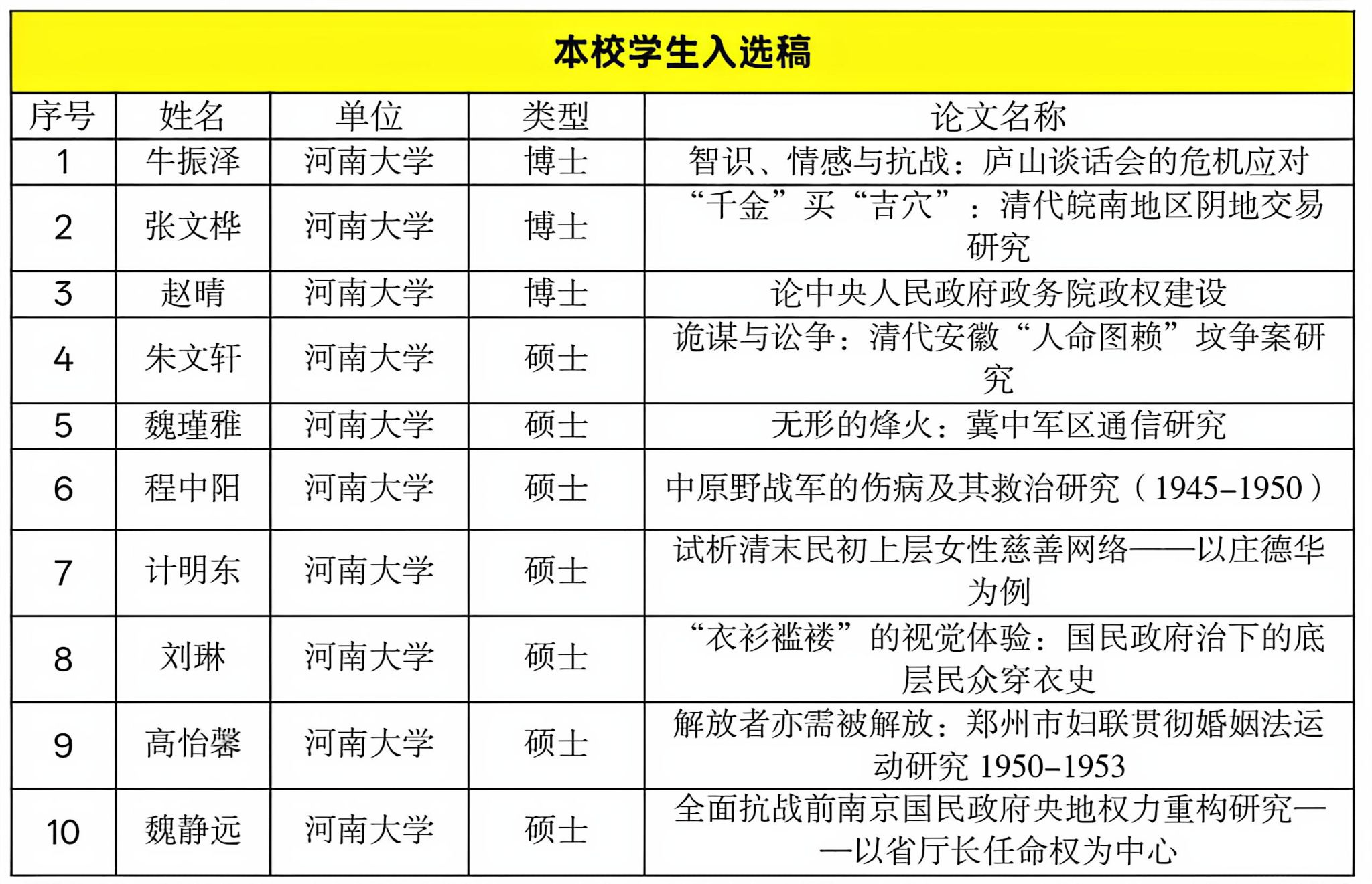 、《史学月刊》教师等审阅、评选,最终遴选出43篇论文参会。限于会议规模,还有较多优秀论文无法入选,甚是遗憾,谨此对广大师生的支持与厚爱表示感谢。