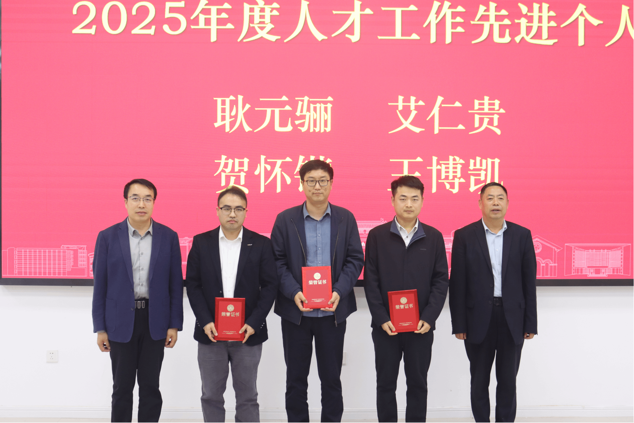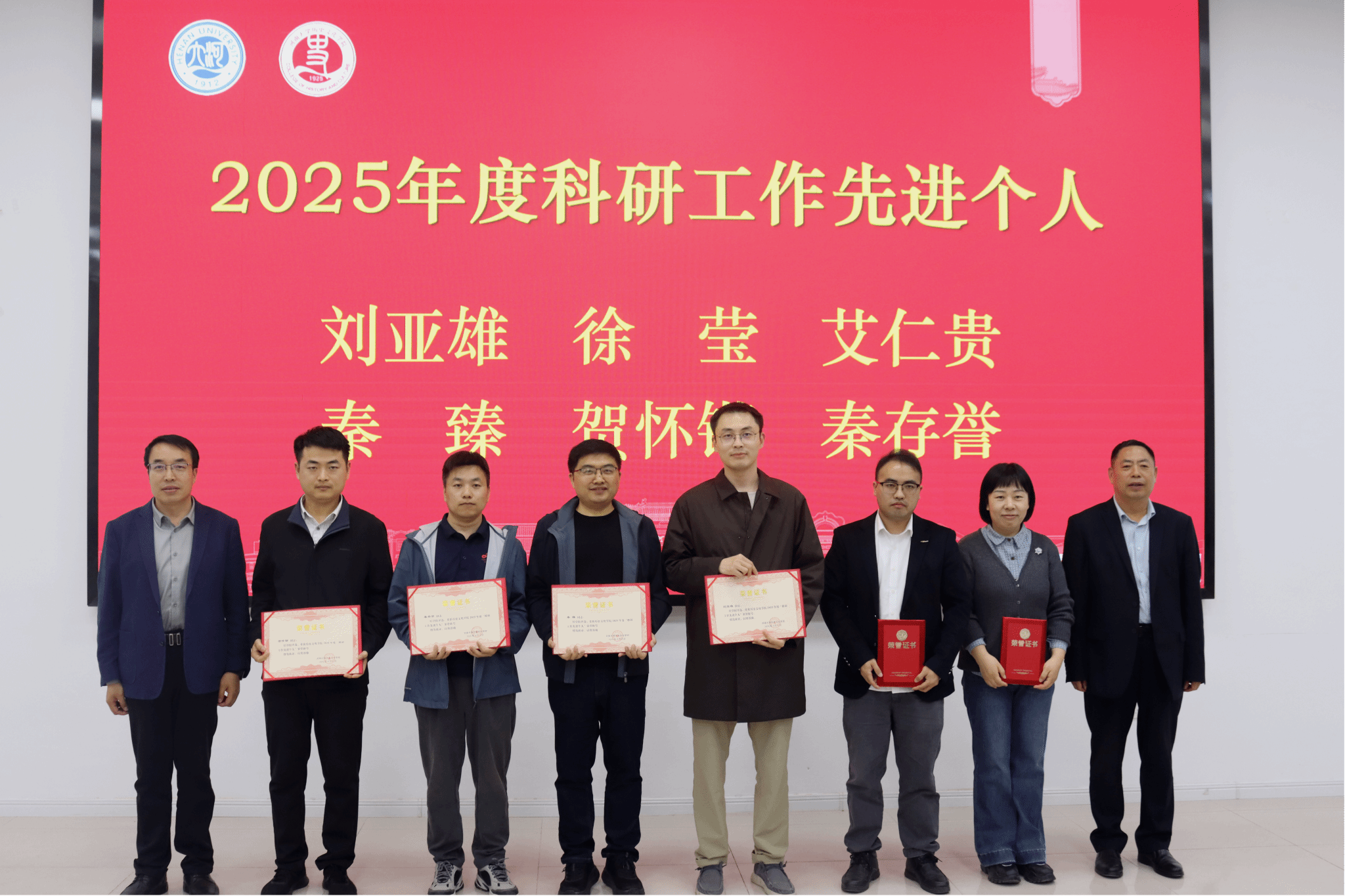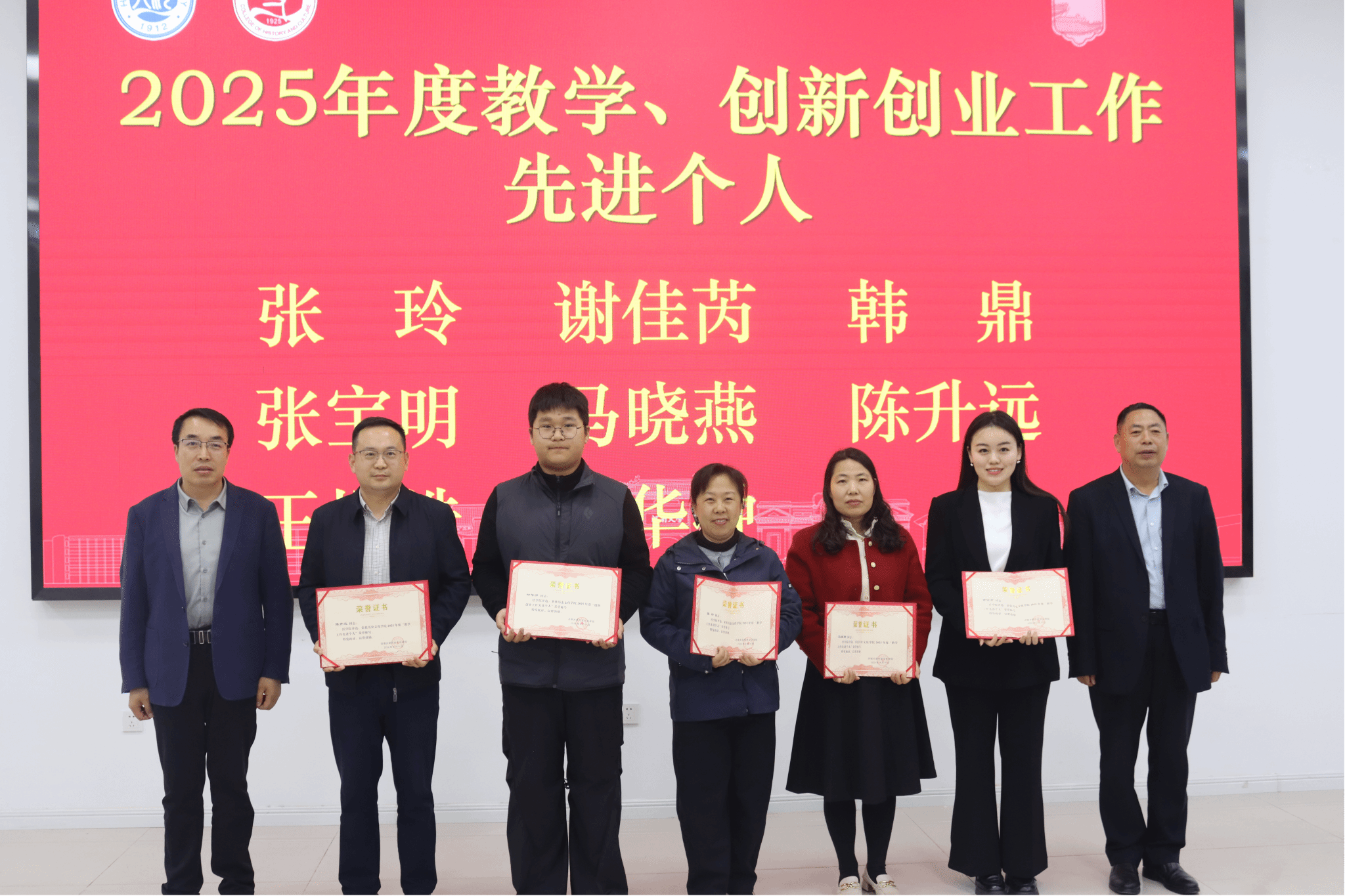 会议对学院2025年度在教学、创新创业、科研及人才工作方面表现突出的先进个人进行了表彰。副院长胡浩、闵祥鹏分别宣读相关表彰文件,学院党委书记张占党、院长祁琛云为获奖人员颁奖并合影留念。